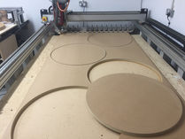 Production of cnc routed parts in MDF, plywood and solid timer.